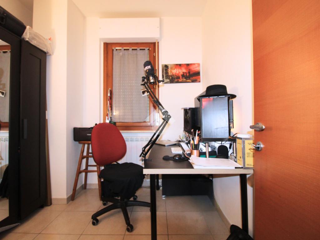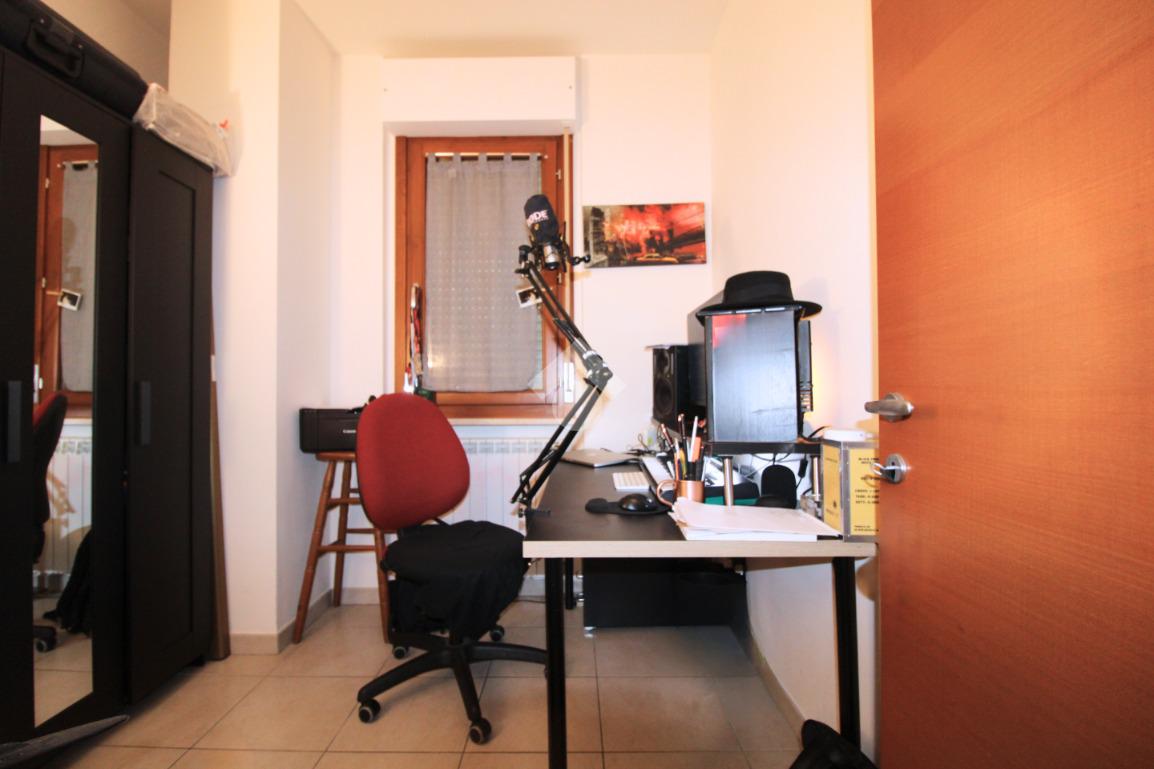 A seguire, un funzionale disimpegno ci conduce alla zona notte composta da una cameretta/studio, una camera da letto matrimoniale e un bagno finestrato con doccia.